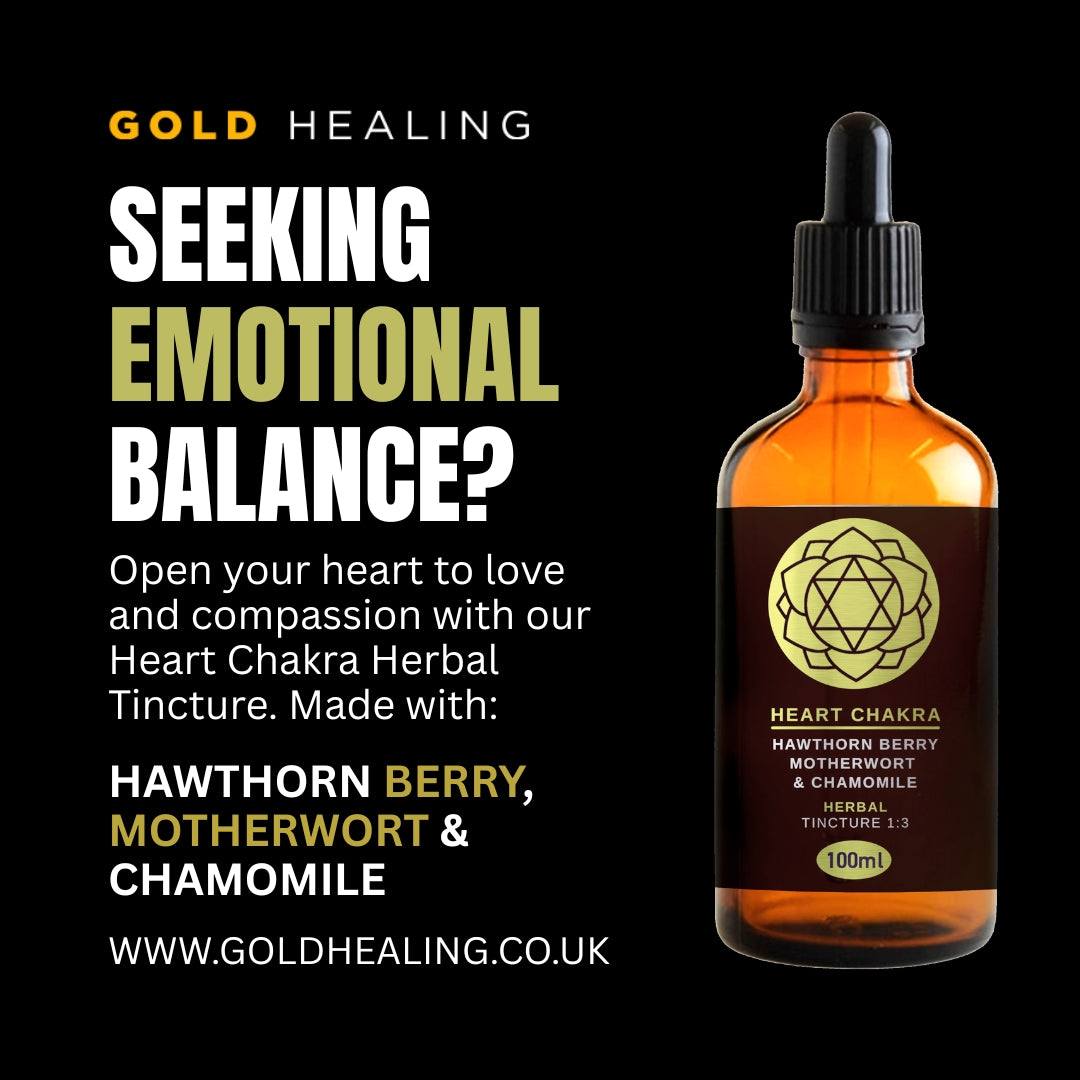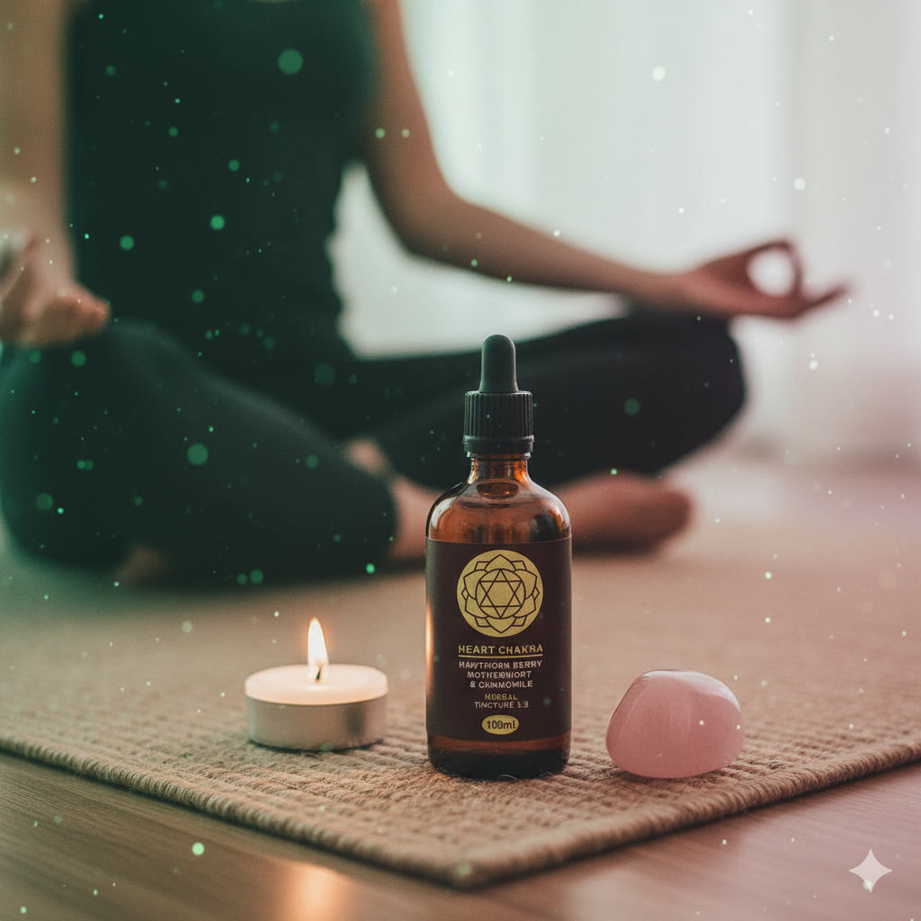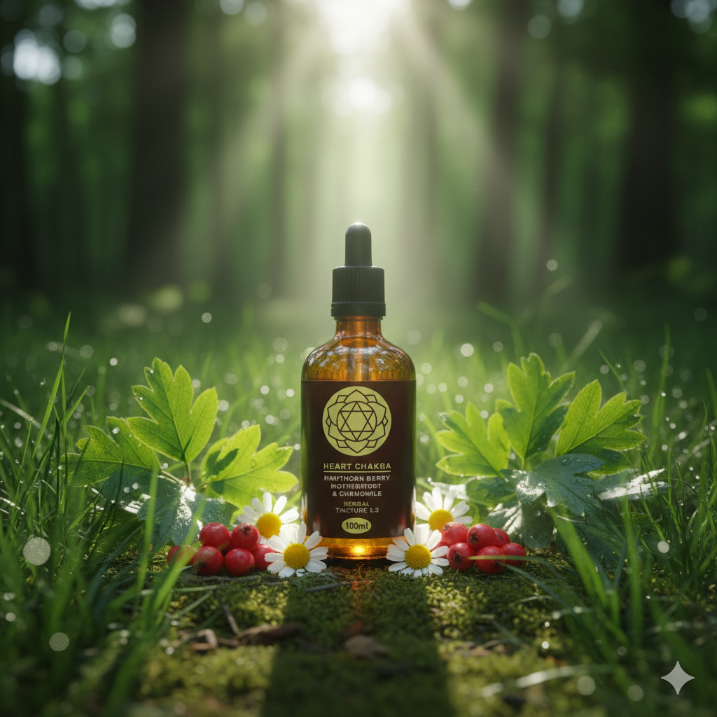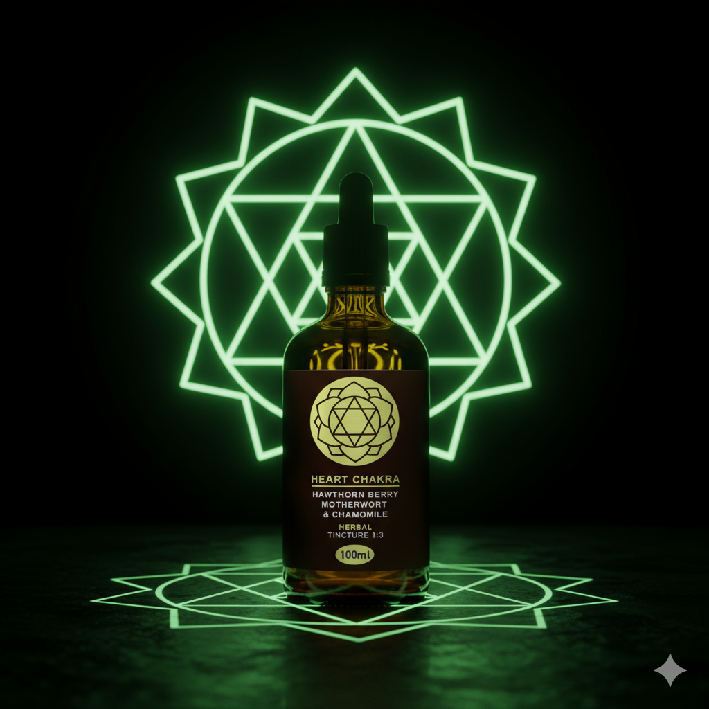Carefully blended with Hawthorn Berry, Motherwort, and Chamomile, this tincture activates the Heart Chakra — the energy centre of love, compassion, and connection. Perfect for meditation, rituals, or daily support for emotional balance and heart wellness.