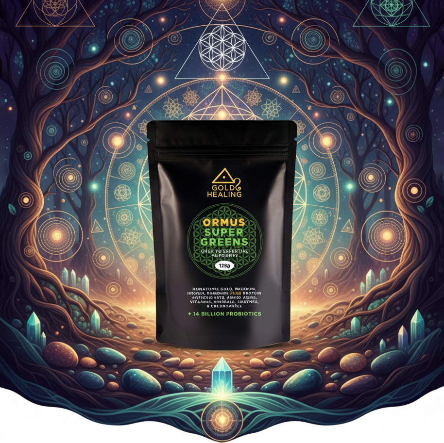 Crafted with a potent blend of 24k Ormus Monatomic Gold and over 70 nutrient-rich superfoods—including vitamins, minerals, probiotics, amino acids, and antioxidants—Gold Healing’s Ormus SuperGreens is designed to support digestion, boost energy levels, and enhance overall vitality. Made with care to the highest standards, it reflects our commitment to purity and holistic wellness. Whether for daily nourishment or spiritual growth, this superfood blend is a trusted companion you can rely on.