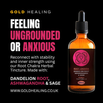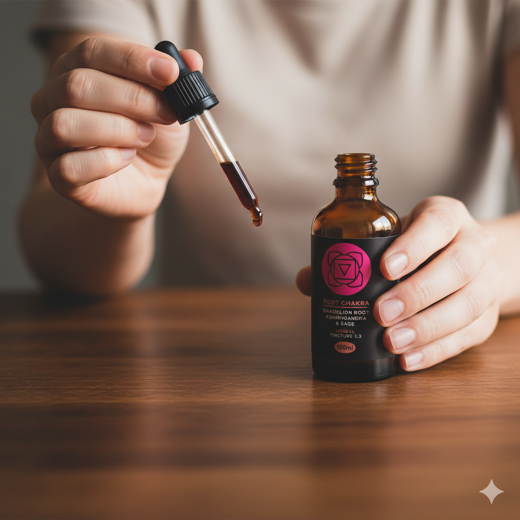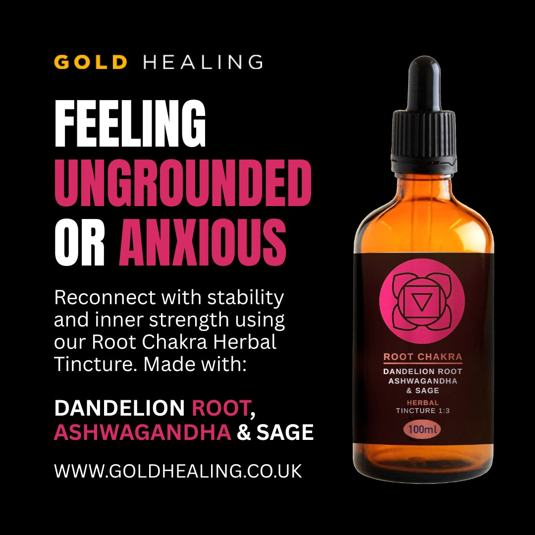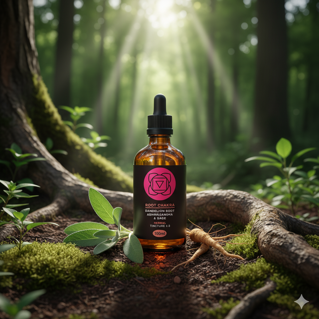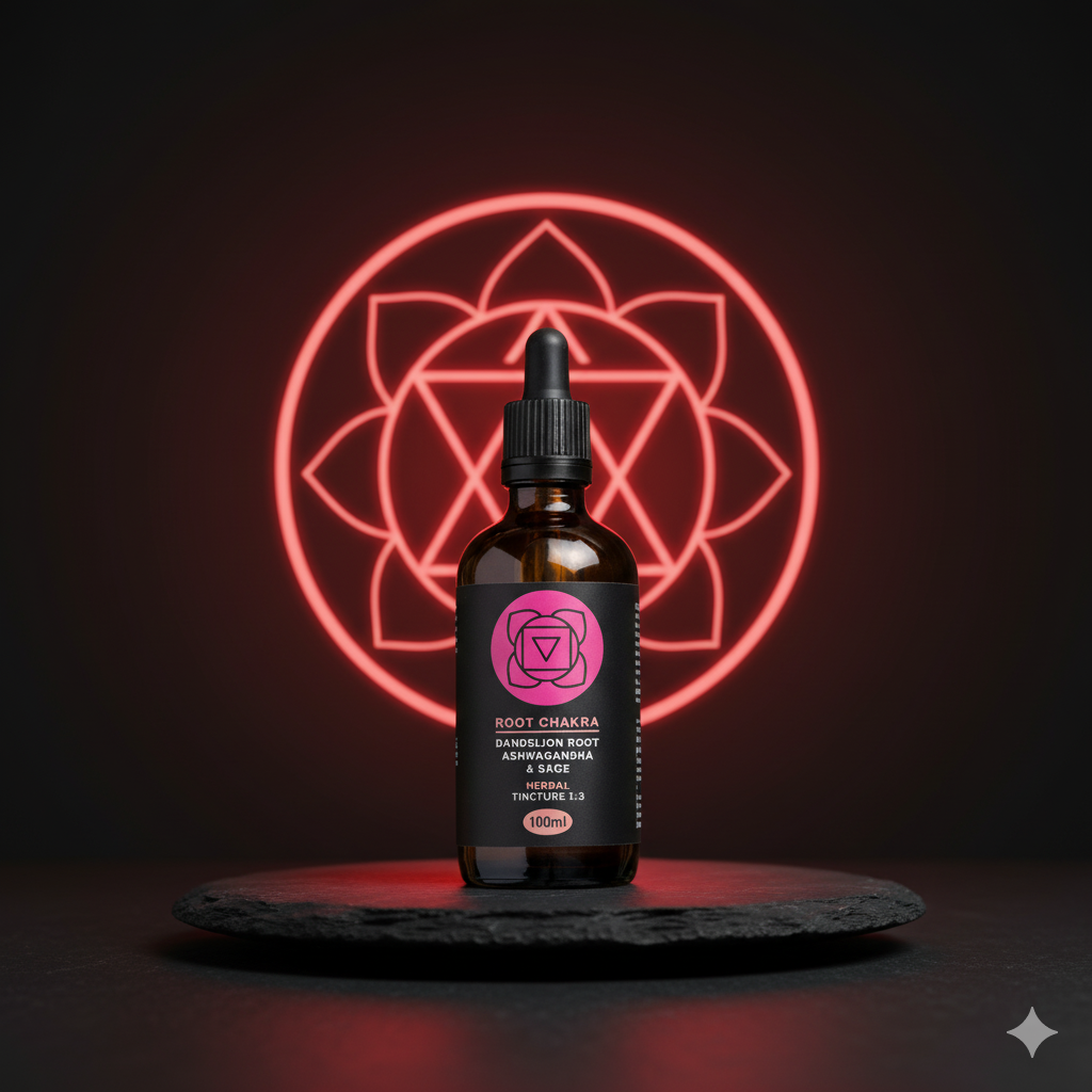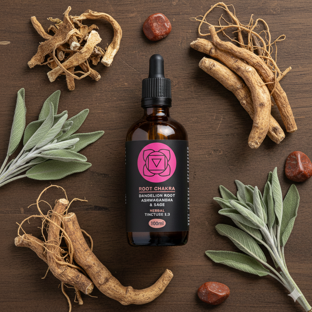 The Root Chakra Tincture is a natural herbal blend designed to restore balance to the Root Chakra. It supports grounding, stability, and inner resilience using Ashwagandha, Dandelion Root, and Sage.