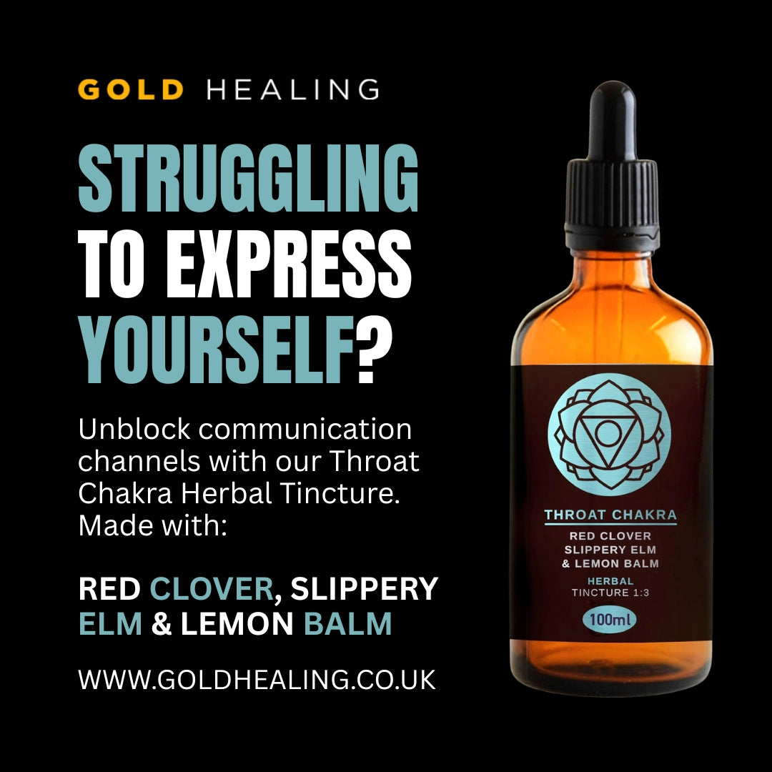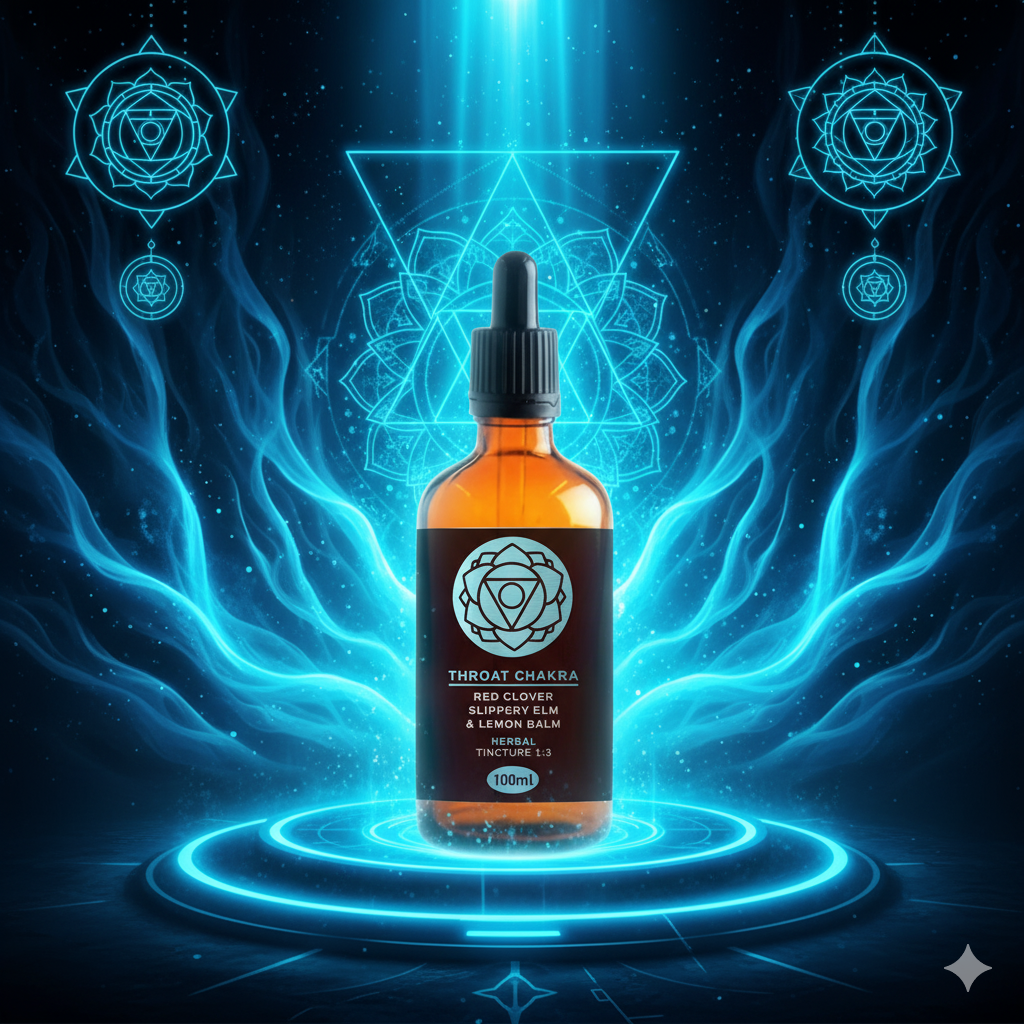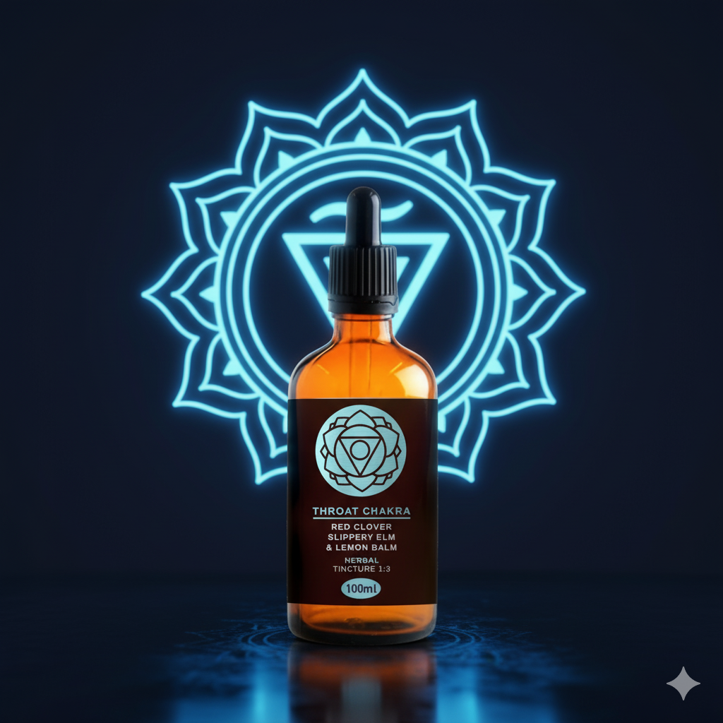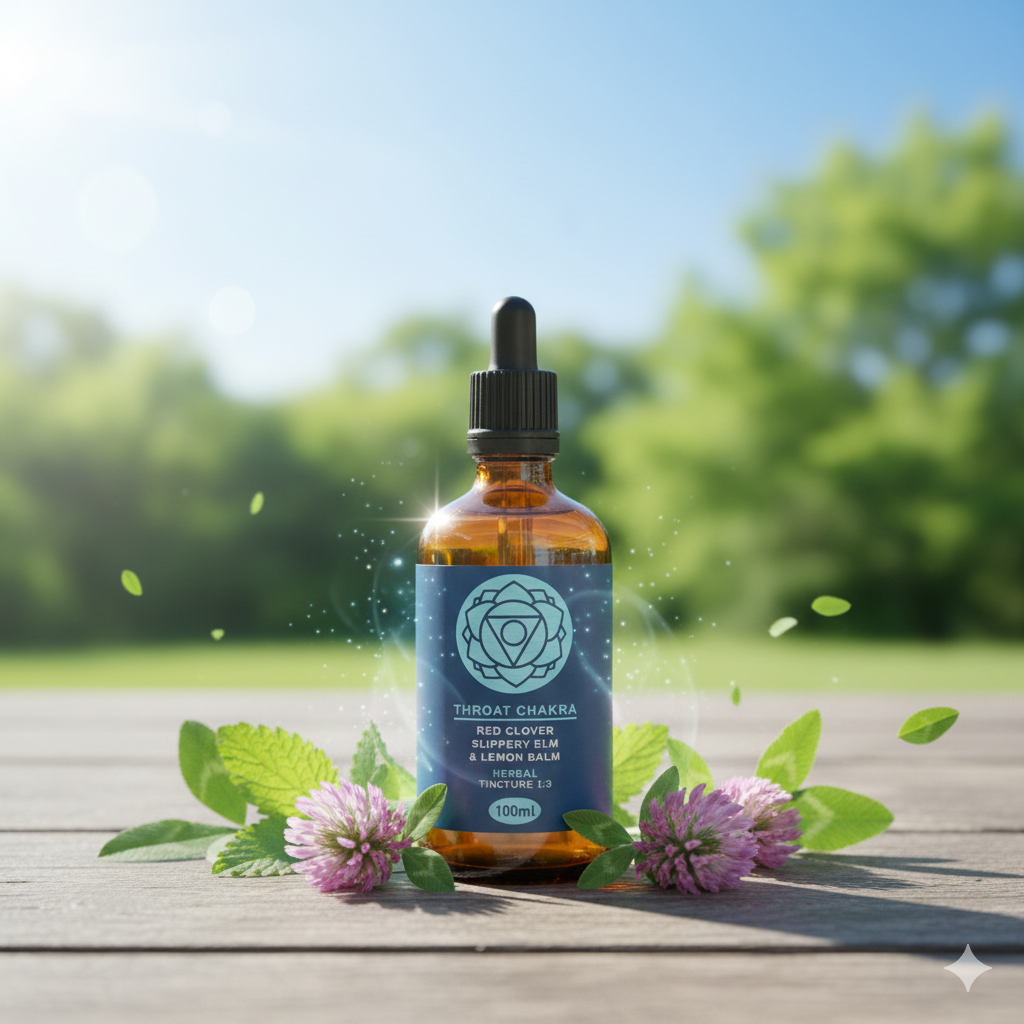 Carefully blended with Red Clover, Slippery Elm, and Lemon Balm, this tincture restores balance to the Throat Chakra — the energy centre of truth and self-expression. Perfect for meditation, vocal work, or daily support for stress-free communication.